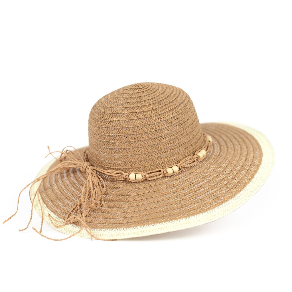 hnědý romantický dámský klobouk s korálky