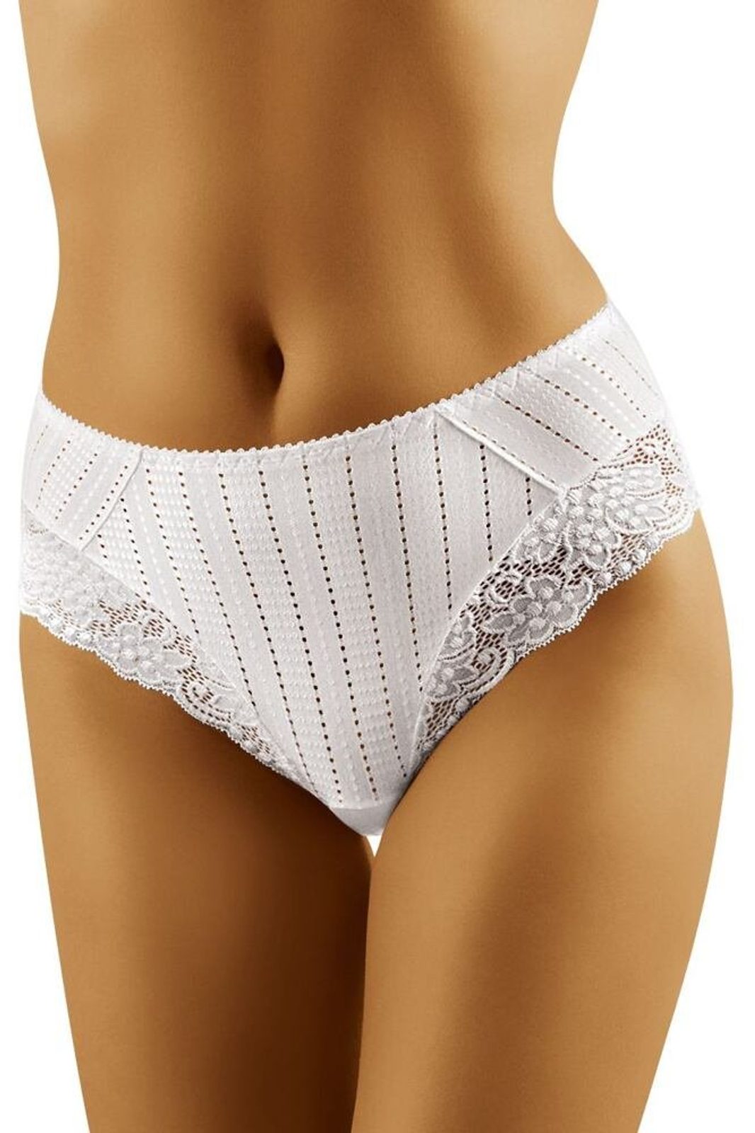 Dámské kalhotky klasické, širší bok, šité, s krajkou, jednobarevné La Femme 2 10211P - bílá