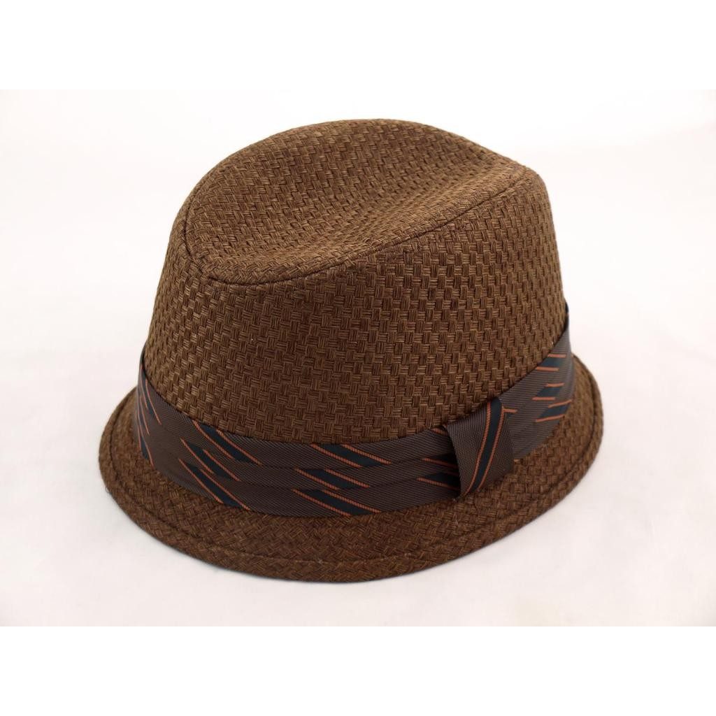 Hnědý klobouk Trilby klobouk se stuhou 52cm