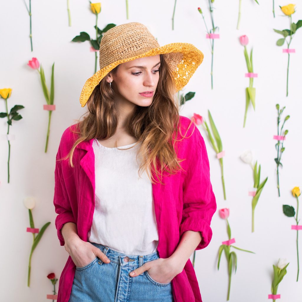 Ažurový klobouk na léto. Letní klobouk se širokým lemem. Může být složen bez újmy pro tvar. Provedený z přírodního materiálu. Vzadu regulace obvodu. Lehký a vzdušný, ideální na vedra.