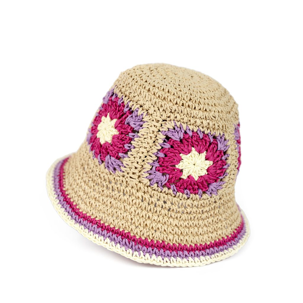 Letní klobouk se zdobeným lemem. Provedený z přírodního materiálu. Může být složen bez újmy pro tvar. Velmi lehký, hezky se prezentuje na hlavě. Hodí se zároveň v rozpáleném městě i na pláži.