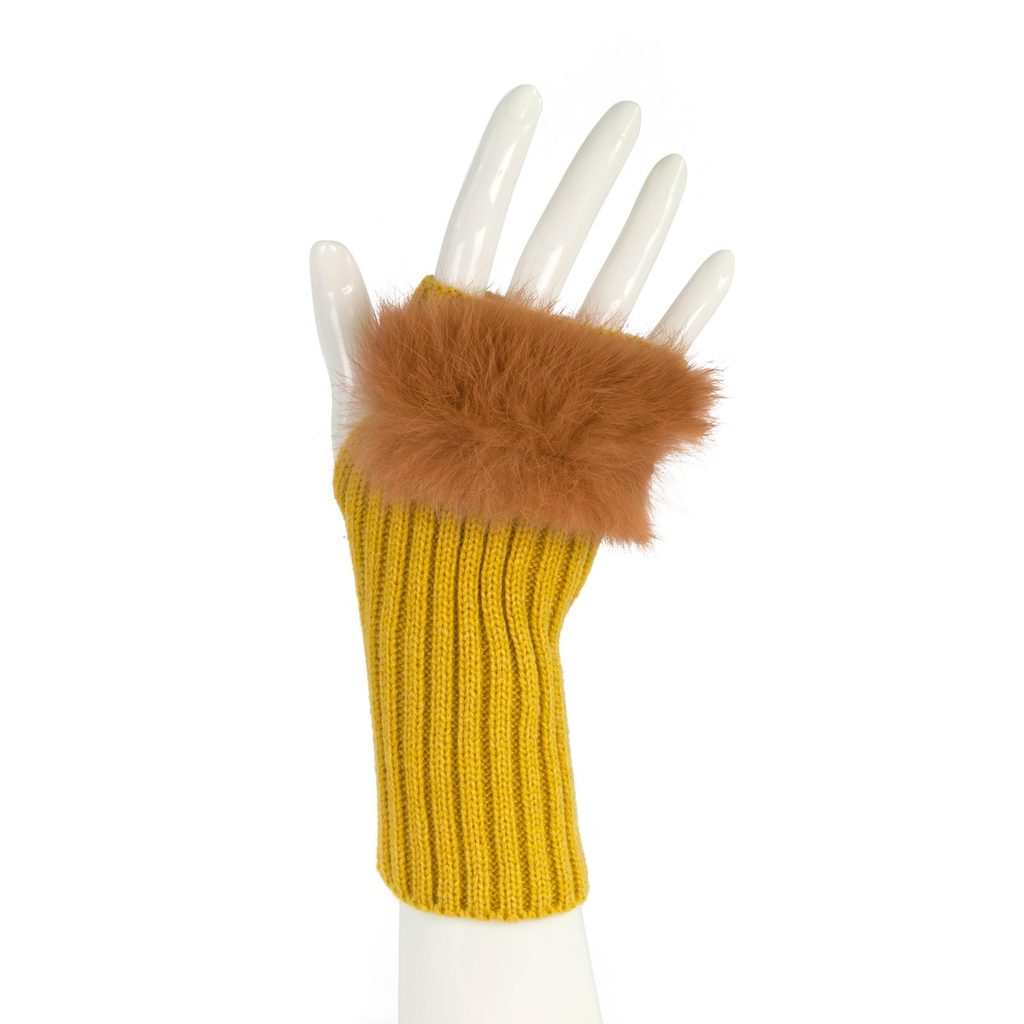 Krátké rukavičky zakončené pravou králičí kožešinkou.