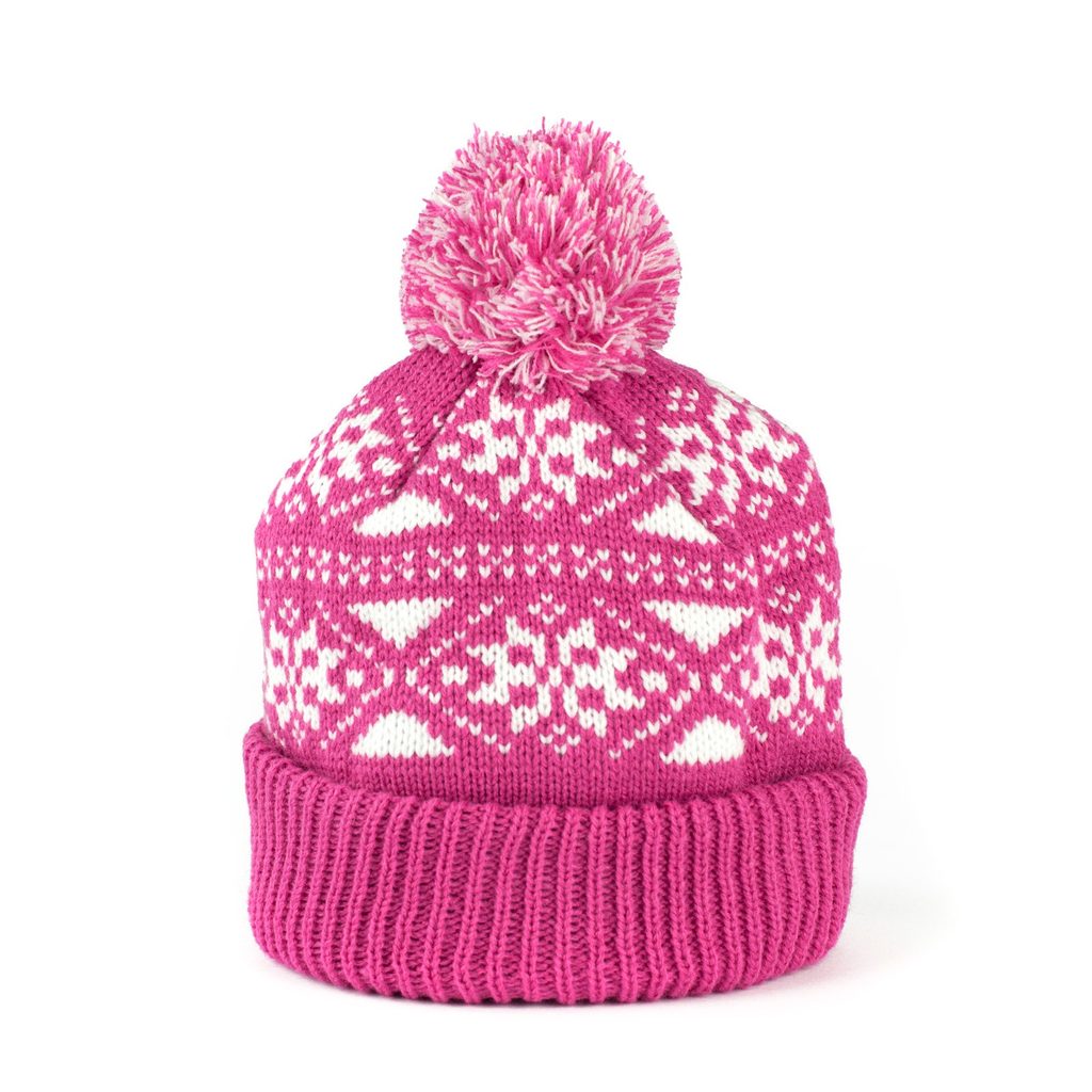 Módní čepice s bambulí zdobená motivem sněhových vloček
