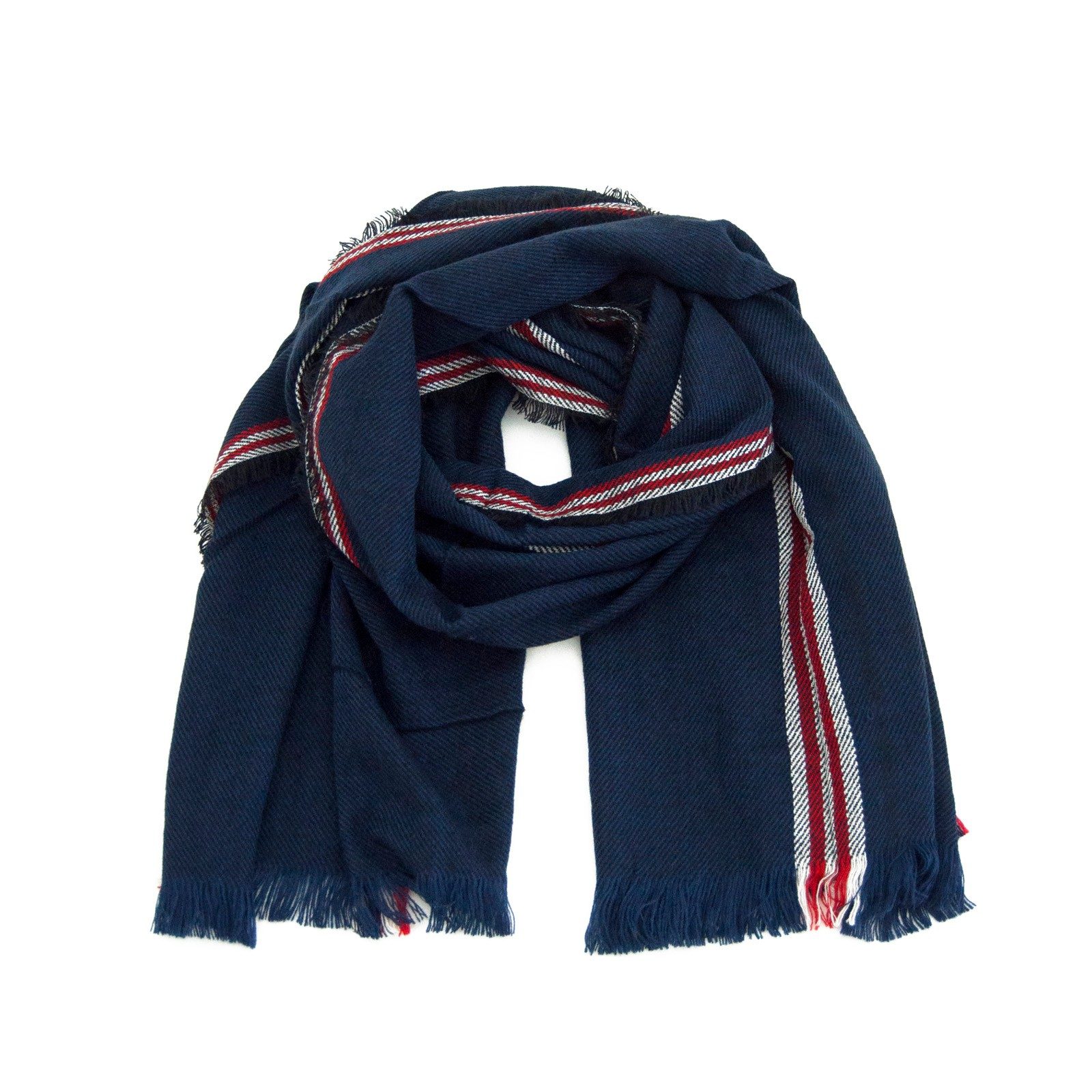 Velký měkký šál zakončený krátkými třásněmi.