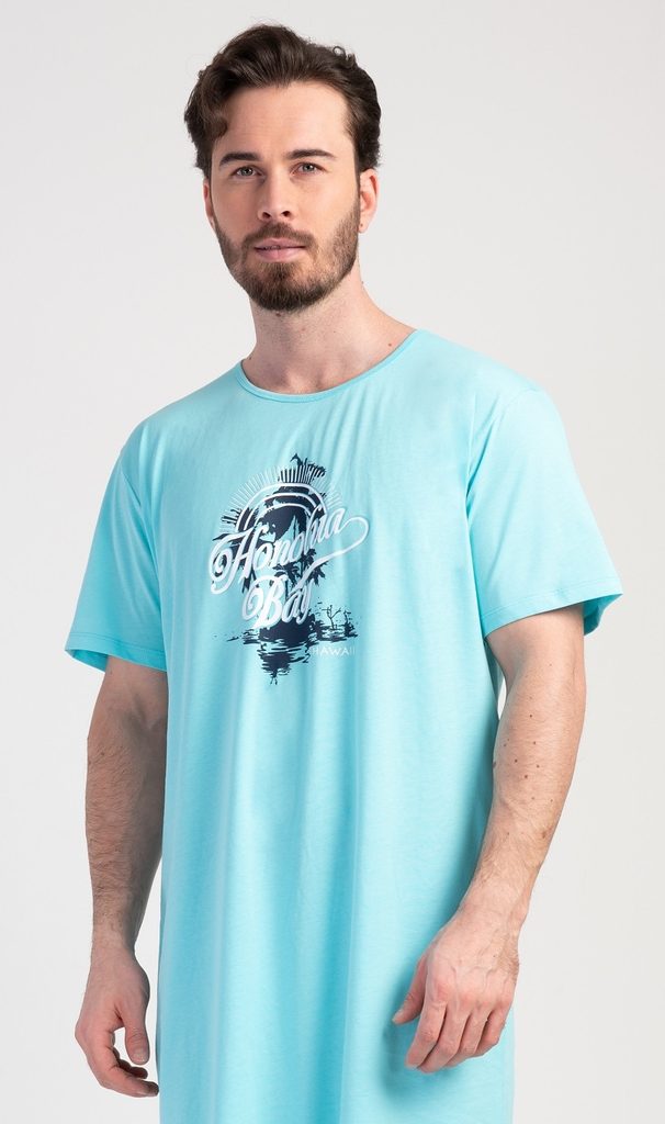 Pánská bavlněná noční košile s krátkým rukávem Honolua bay. Jednobarevná pánská noční košile s kulatým výstřihem je zdobena obrázkem ostrova a nápisem 'Honolua bay'. Tato košile je vhodným dárkem pro všechny milovníky moře a exotiky. Použitý materiál je příjemný a poddajný na dotek. Obsah bavlny je 100%.