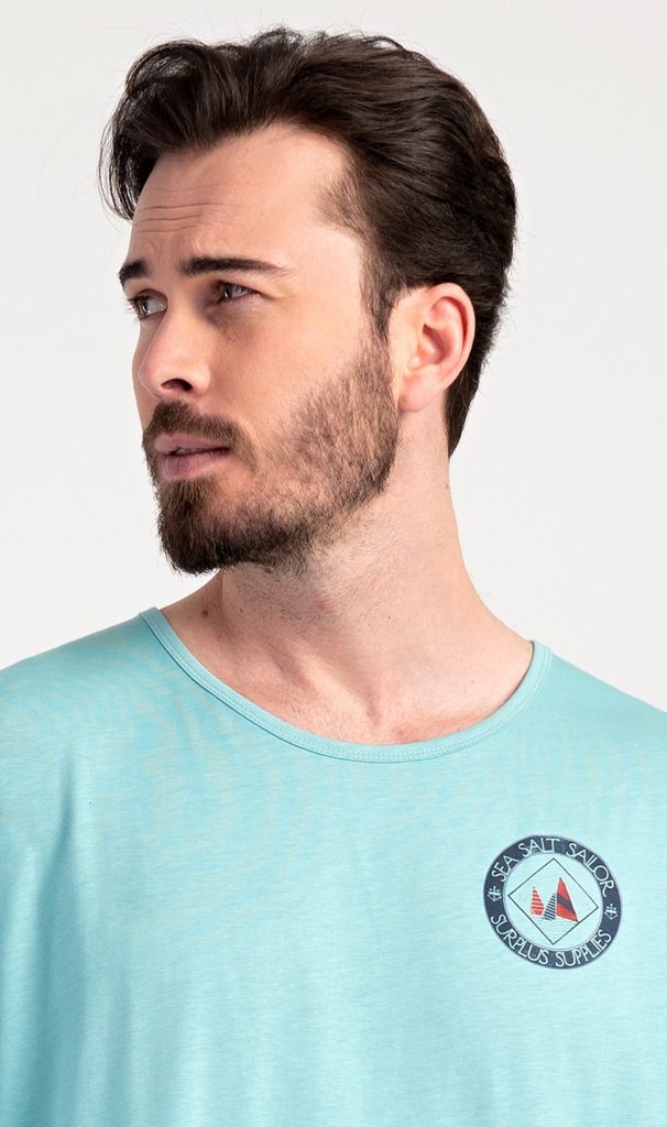 Pánská bavlněná noční košile s krátkým rukávem Sea. Jednobarevná pánská noční košile s kulatým výstřihem a délkou po kolena je zdobena decentním obrázkem s námořnickým motivem. Použitý materiál je příjemný a poddajný na dotek. Obsah bavlny je 100%.