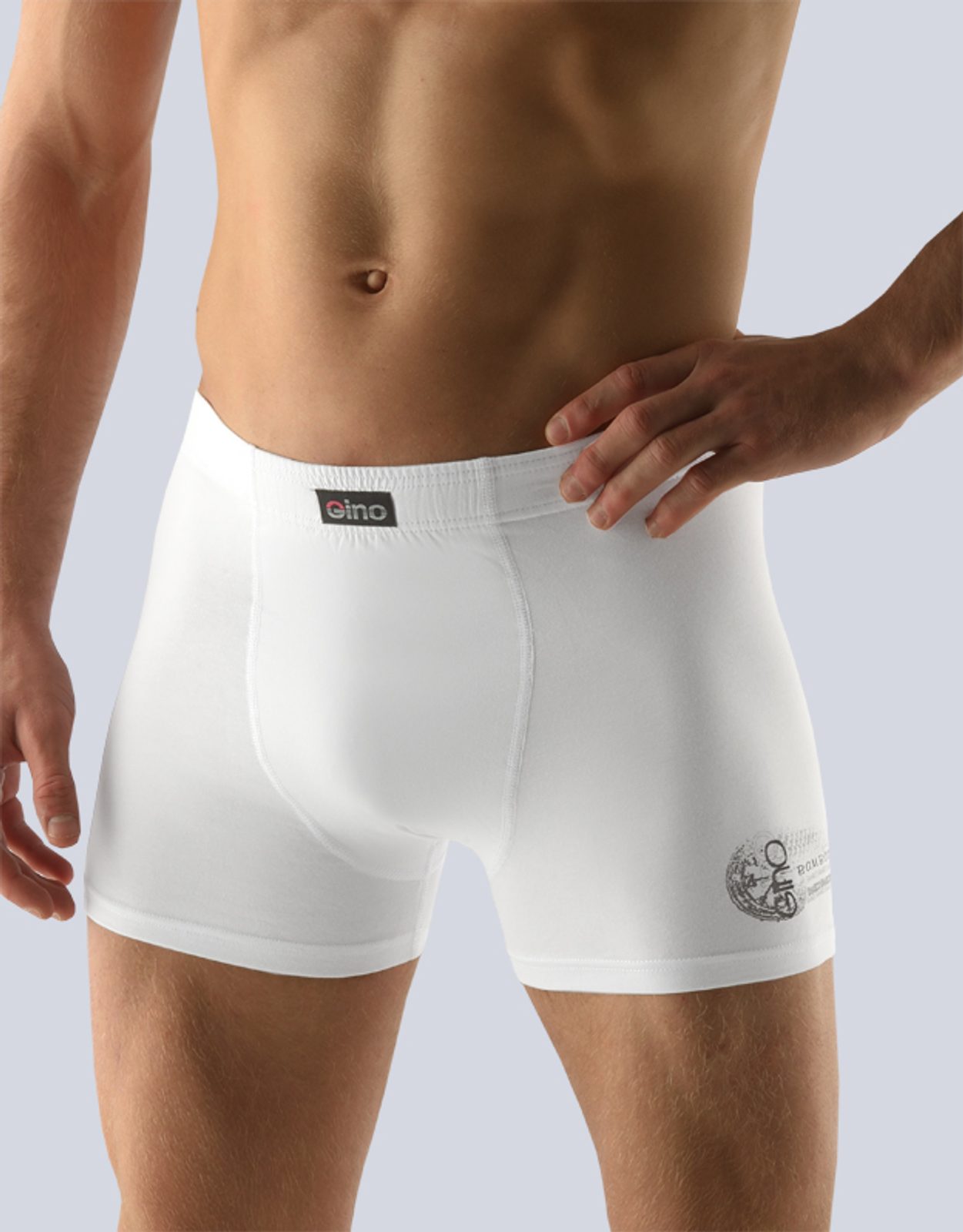 Pánské boxerky s delší nohavičkou, delší nohavička, šité, s potiskem 74041P - bílá