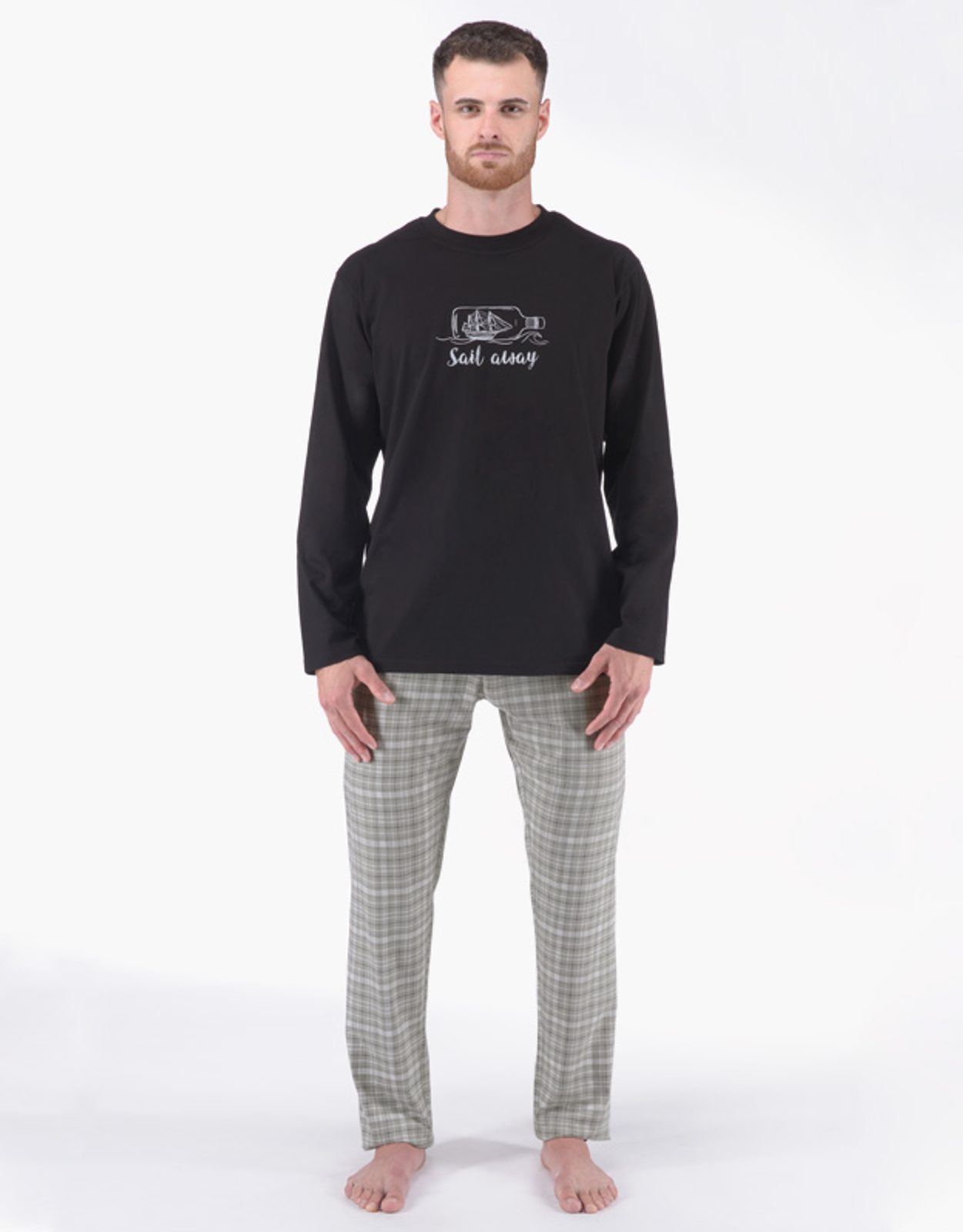 Pyžamo dlouhé pánské, šité, s potiskem, kód 79177. Složení: 100% Bavlna