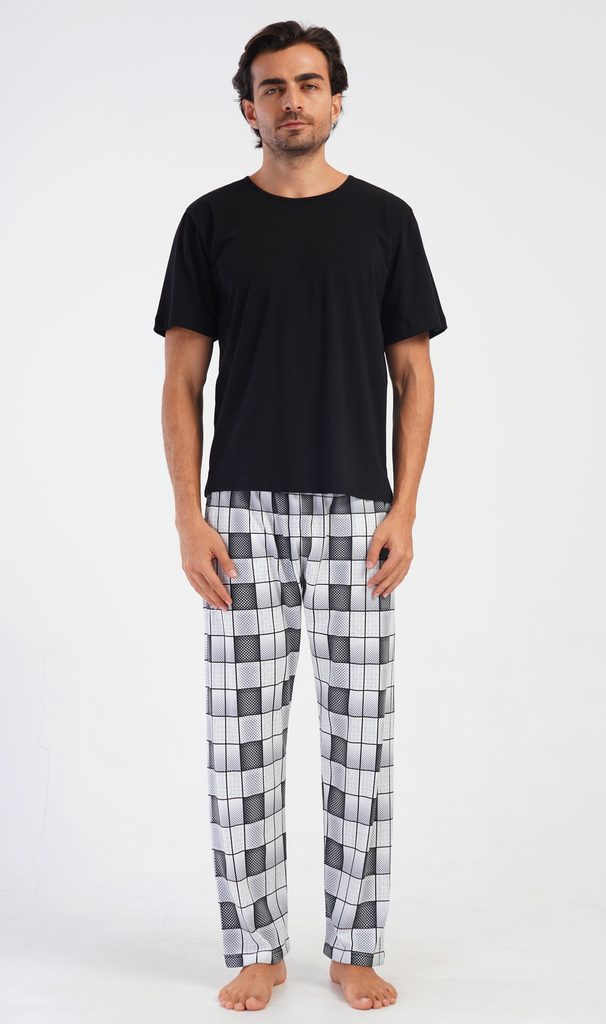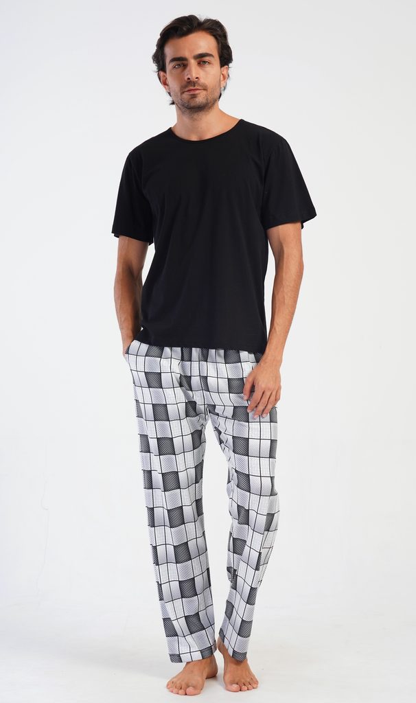 Pánské bavlněné pyžamové kalhoty Kuba. Kostkované kalhoty mají v pase gumu, šňůrku na stažení a praktické kapsy. Mateiriál s podílem bavlny 100% je příjemný a poddajný na dotek.