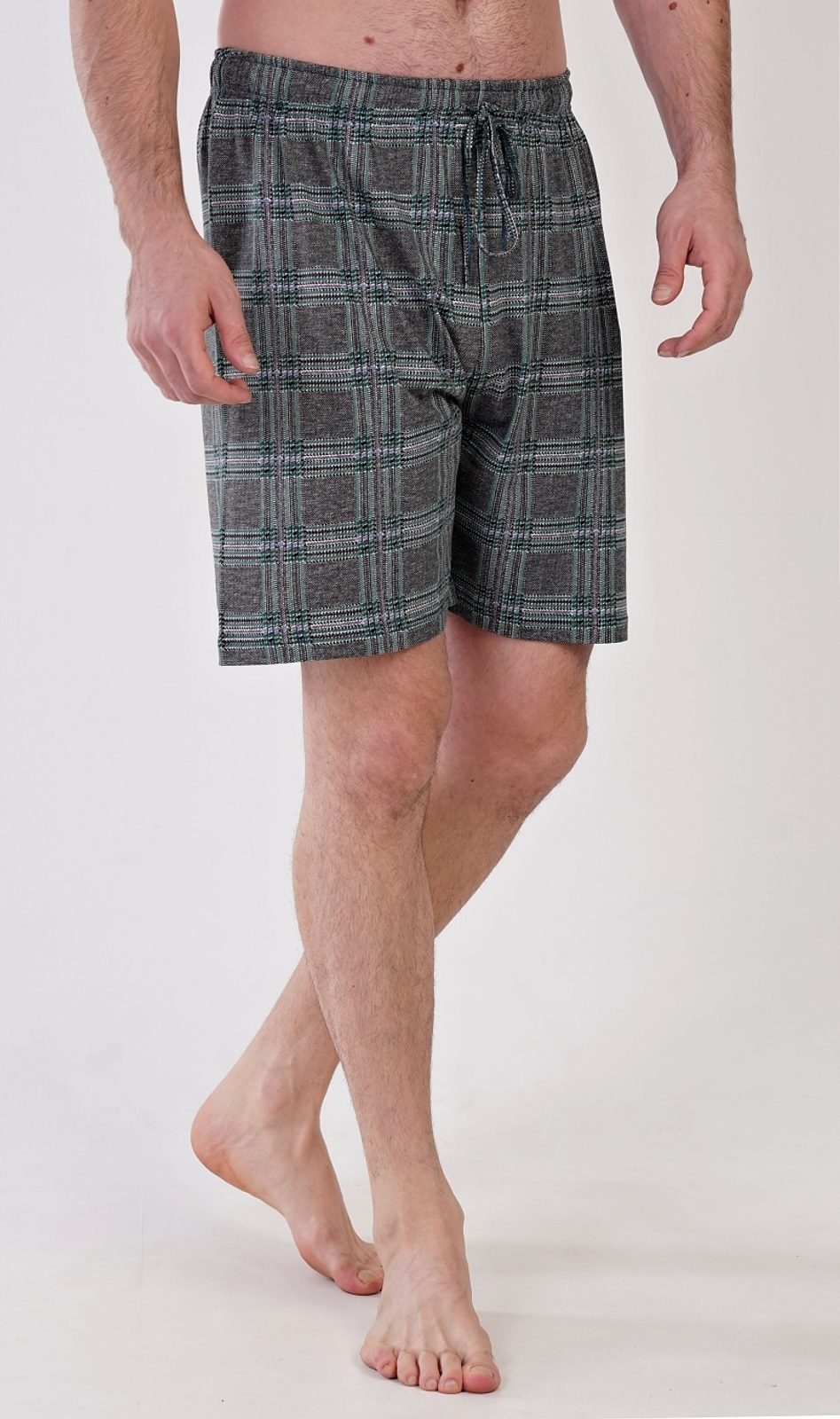 Pánské bavlněné pyžamové šortky Adam. Kostkované šortky mají v pase gumu a šňůrku na stažení, namají kapsy. Použitý mateiriál je příjemný a poddajný na dotek. Kalhoty jsou vhodné na denní nošení.