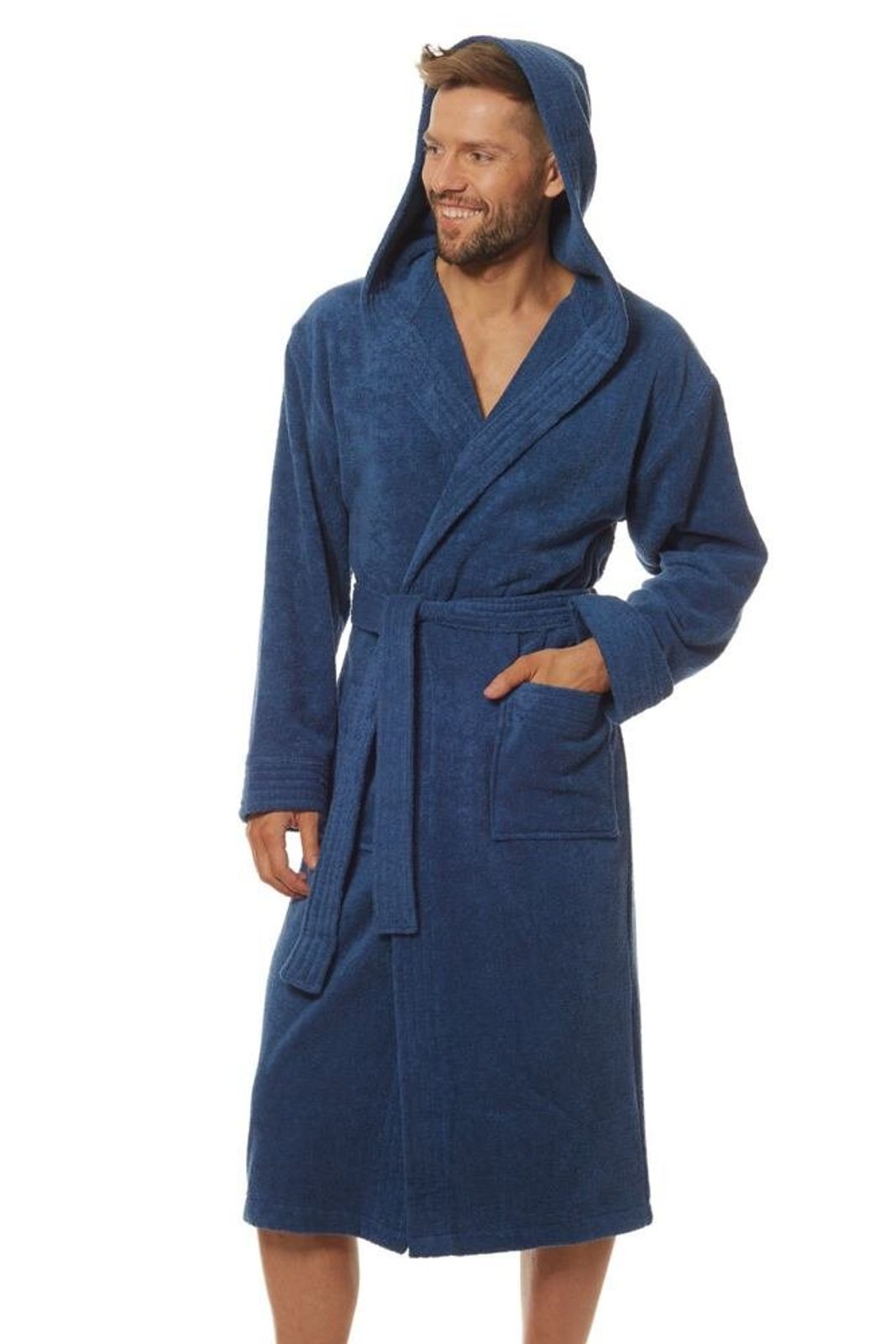 Unisex dlouhý hřejivý župan s kapucí SIENA petrolejová Pánský župan s kapucí Albert - modrošedá