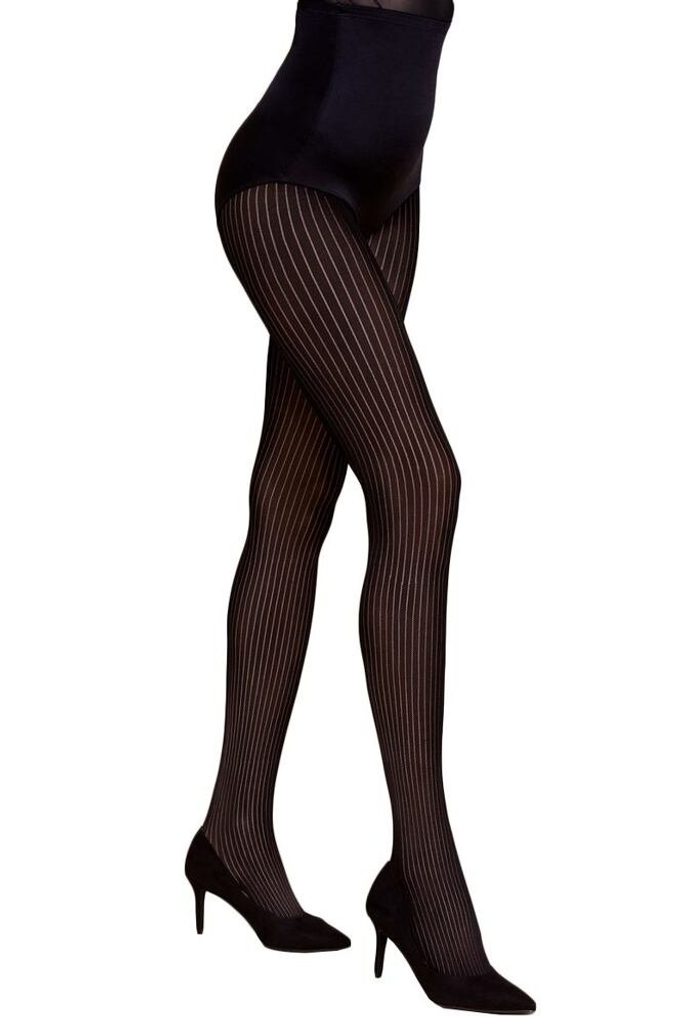Elegantní dámské punčocháče mají podmanivě černou barvu a jemný proužkovaný vzor. Elegantní dámské punčocháče mají podmanivě černou barvu a jemný proužkovaný vzor. Materiál: 84% polyamid, 15% elastan, 1% bavlna