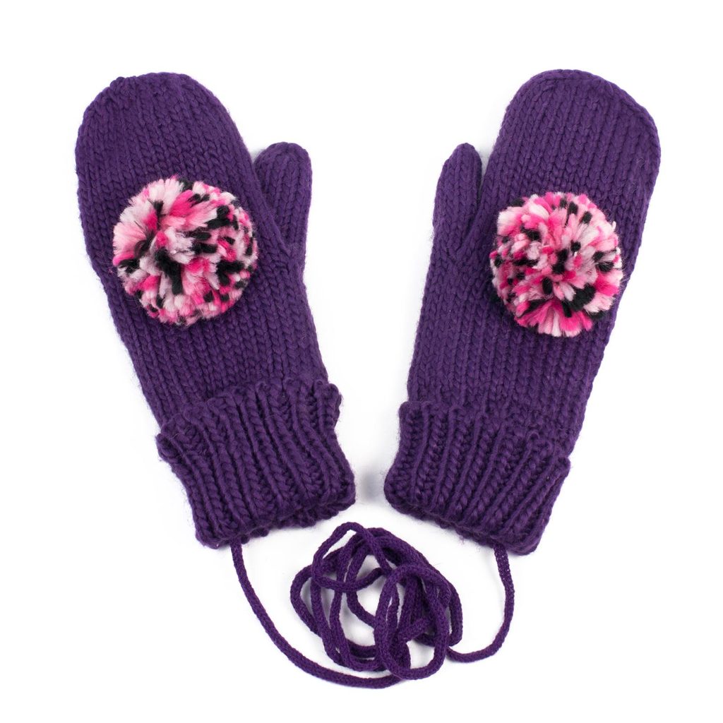 Rukavice s bambulí fialové