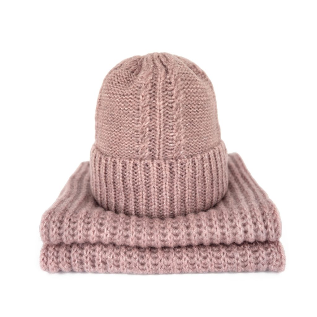Sada pletené čepice a šály Lomnice růžová Zimní komplet fuchsiový
