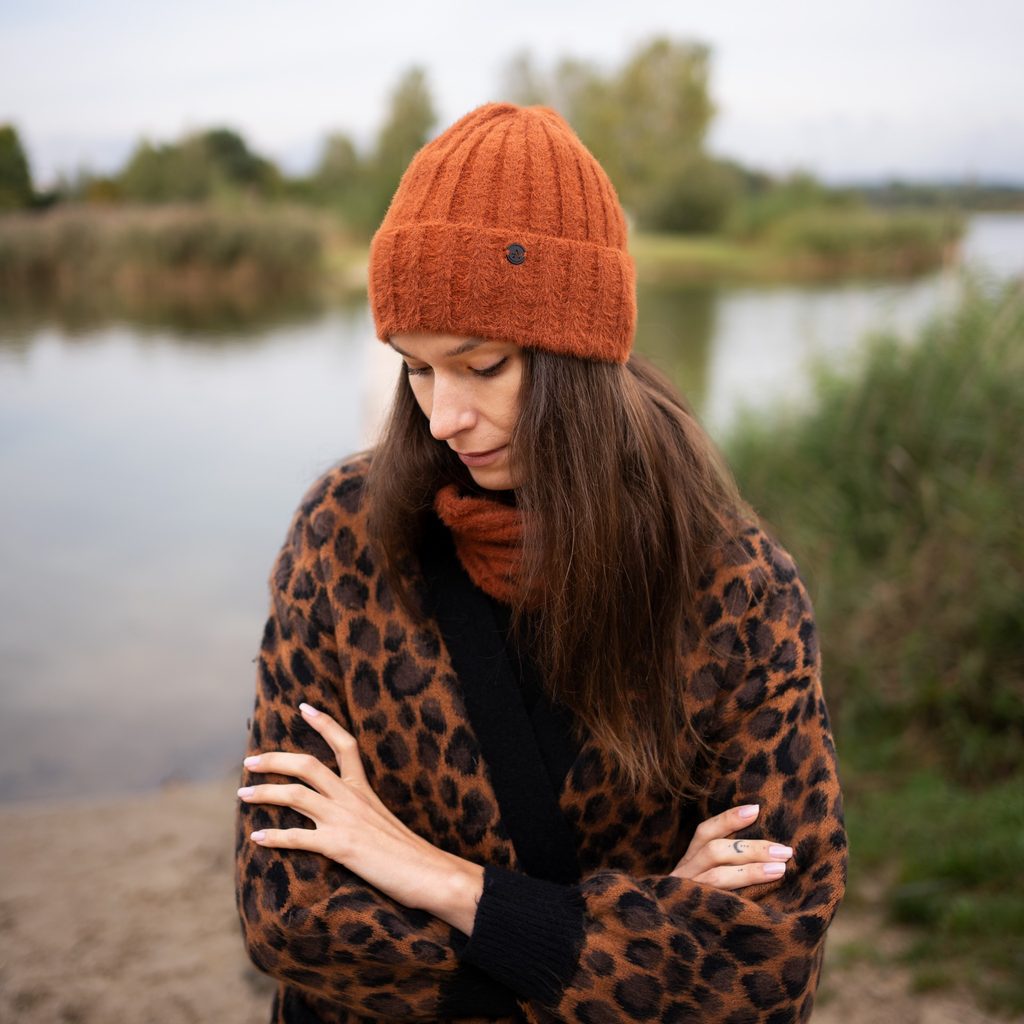 Sada pletené čepice a šály Lomnice hnědá