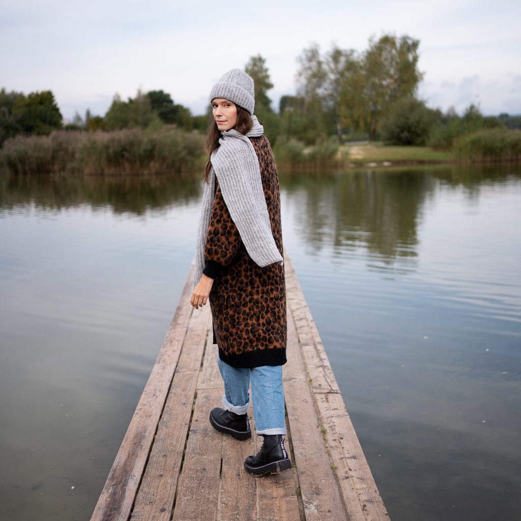 Zimní sada: čepice a šála. Provedená z měkkého a příjemného materiálu. Čepice je z vnitřní strany podšitá flaušem. Klasický střih se bude hodit k mnoha stylizacím. Ideální sada pro milovníky jednoduchých řešení.