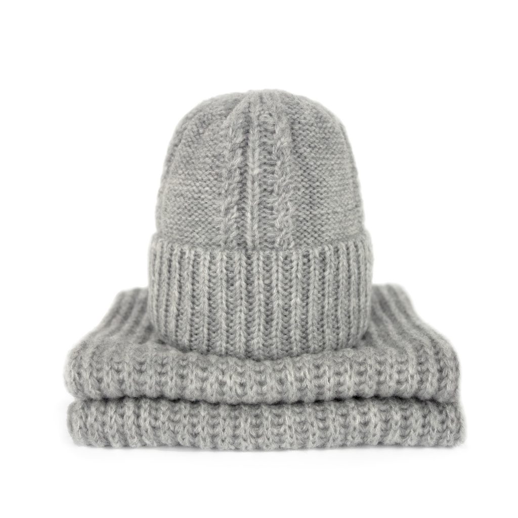 Komplet s bambulí - čepice a šál šedý