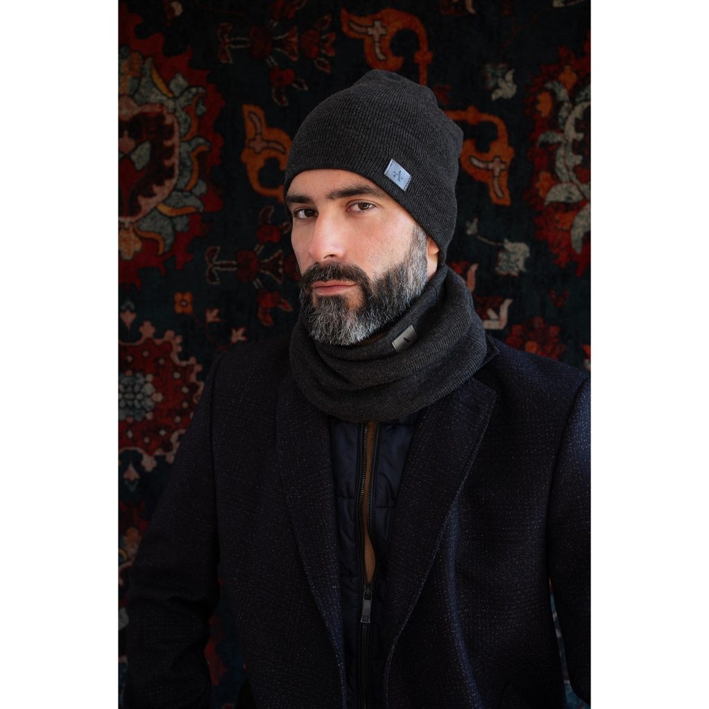 Zimní tmavě hnědá sada: čepice a šála Zimní komplet čepice a nákrčníku černý