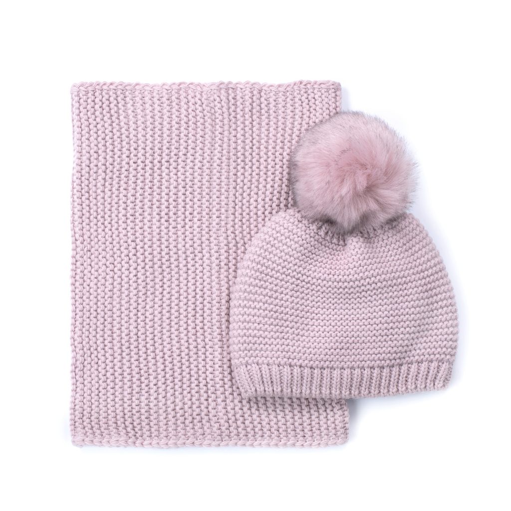 Sada pletené čepice a šály Lomnice starorůžová Sada tmavomodrá