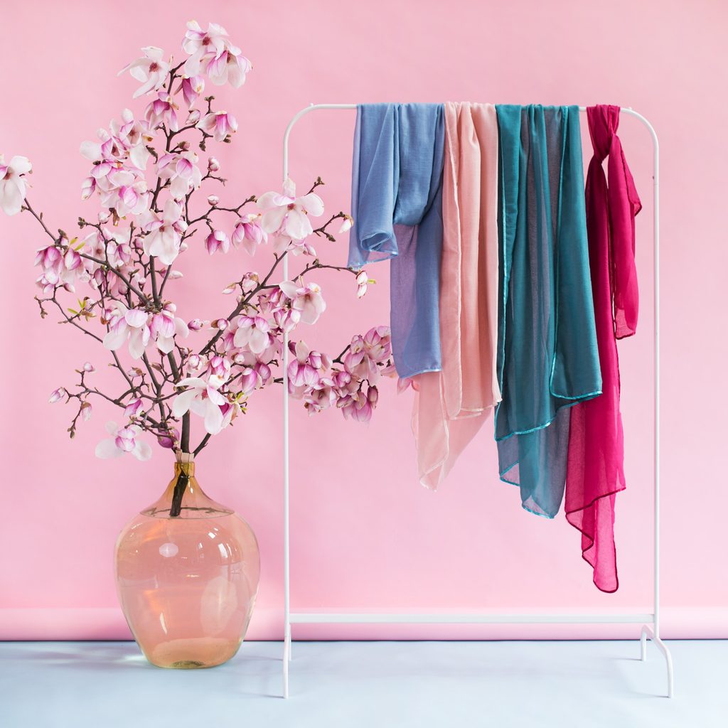 Minimalistická šála v moderním barevném provedení. Provedená z jemného prodyšného materiálu. Stvořená pro zabalení do turbanu na hlavě. Ideální pro osoby, které si cení vysoké kvality. Klasický doplněk pro každý šatník.