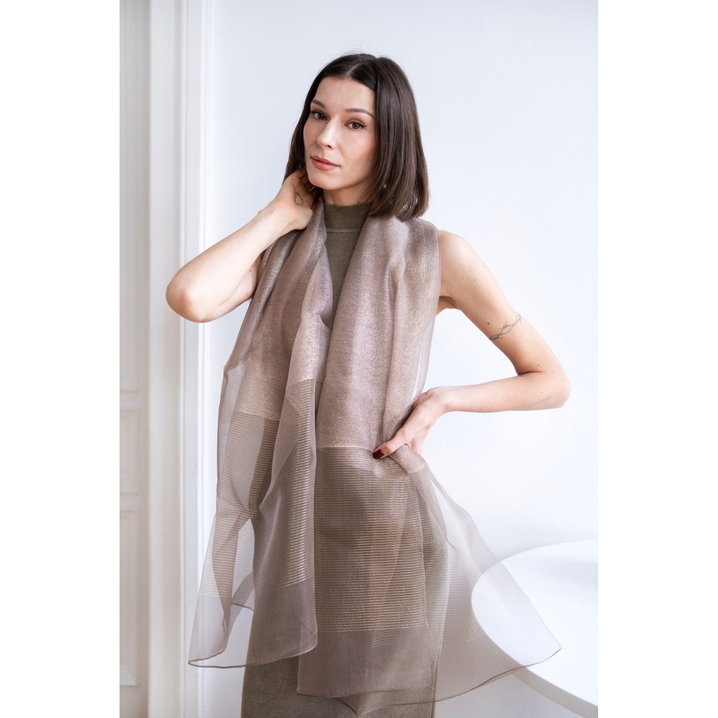 Záhadná lehká šála. Provedená z materiálu se zajímavou strukturou povrchu. Jemná a lehká, každodenním stylizacím dodá romantismus. Stvořená pro milovnice romantického stylu.