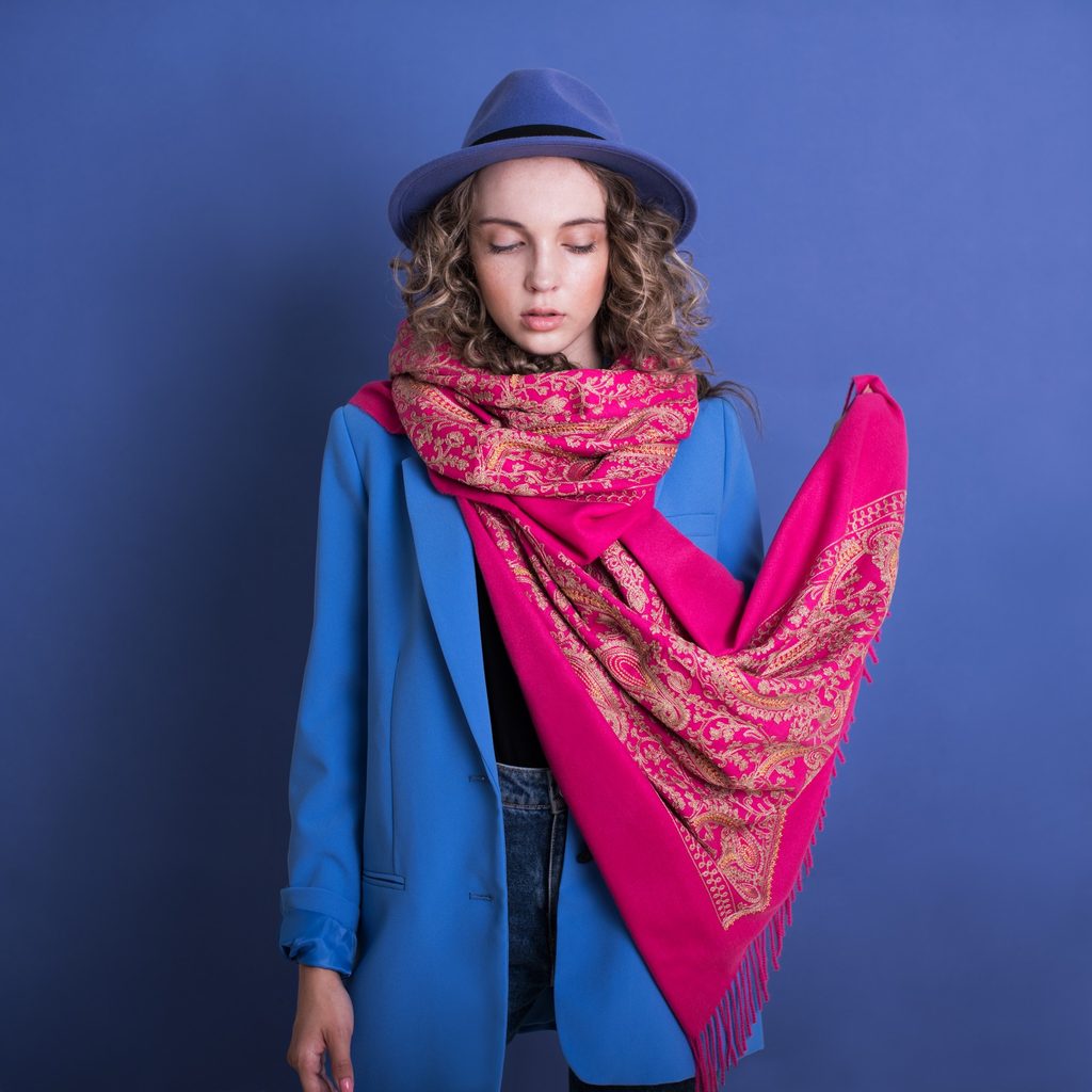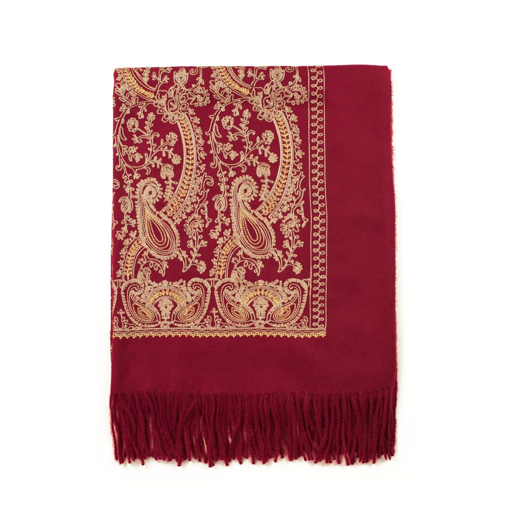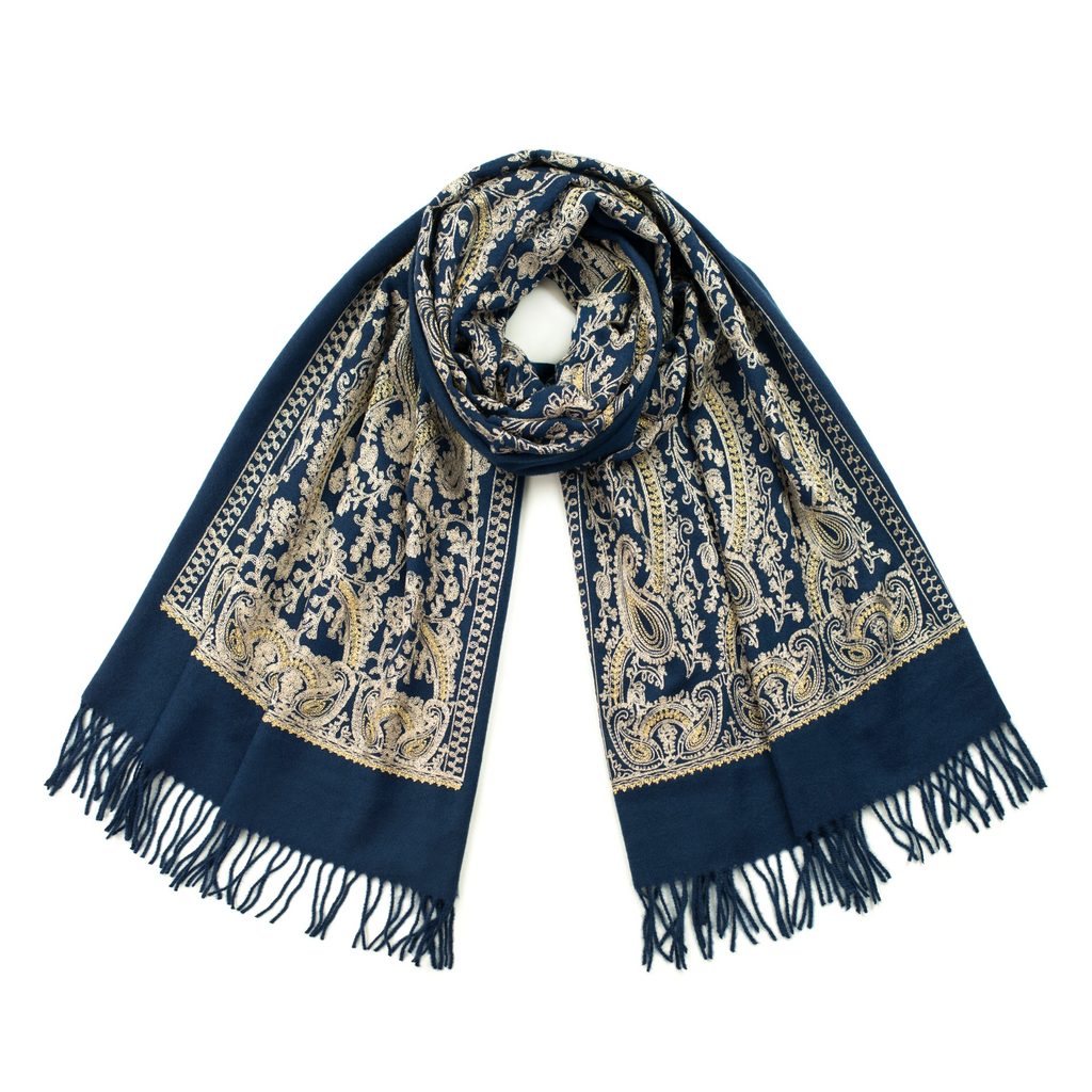 Nadýchaná měkká šála s třásněmi. Provedená z měkkého a příjemného materiálu. Velmi dlouhá, ideální k zabalení se. Velmi působivá. Výrobek dekorovaný výšivkou. Ideální doplněk pro ženy, které mají v oblibě originální šály.