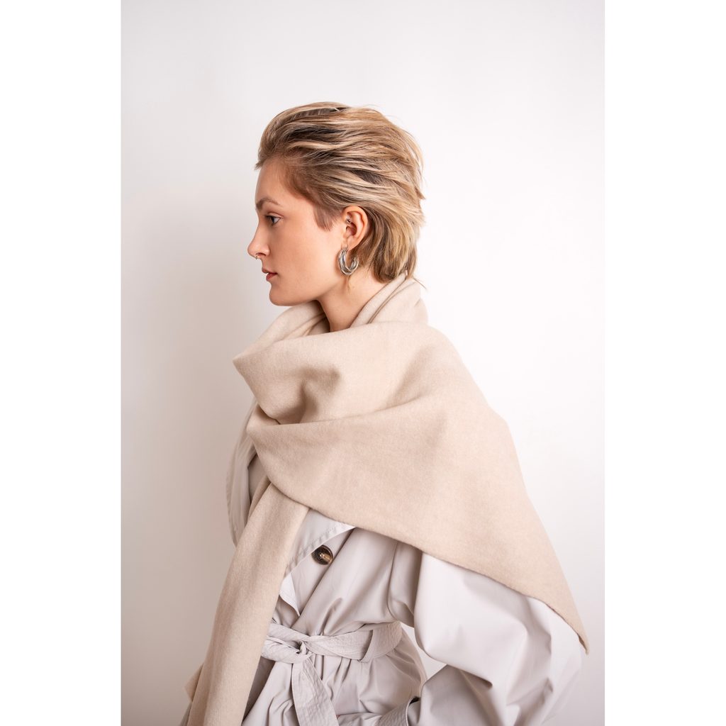 Elegantní šála v klasickém střihu. Provedená z látky s přísadou vlny. Provedená z měkkého a příjemného materiálu. Tónovaná a minimalistická, skvěle doplní klasické stylizace.