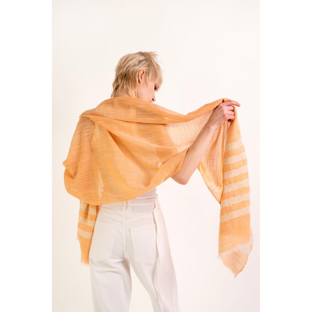 Lehká šála zakončená třásněmi. Prodyšná a měkká, krásně se formuje. Jednoduchá svou formou, hodí se k různým stylizacím. Klasická a nadčasová.