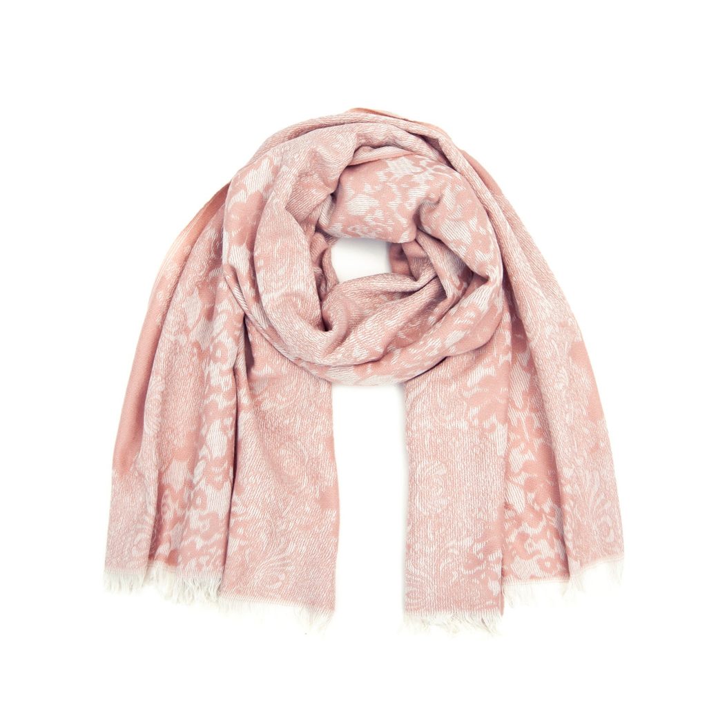 Exkluzivní šál s motivem krajky a květů.