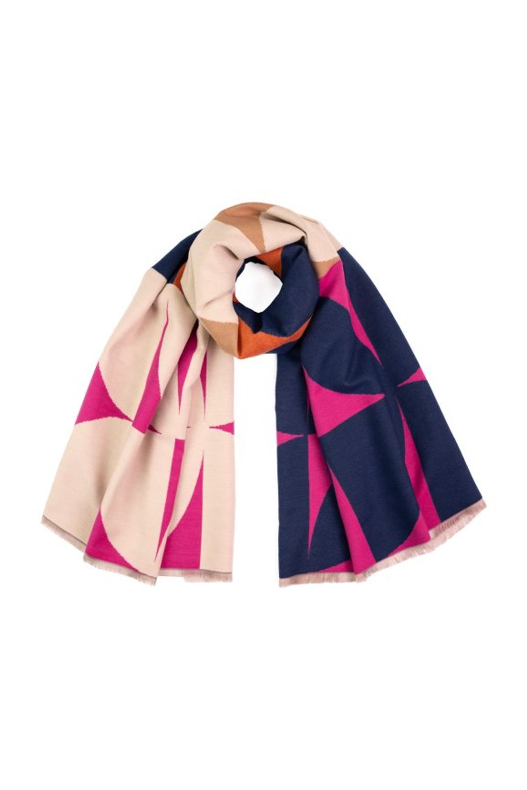 Zimní šála s geometrickými motivy. Provedená z měkkého a příjemného materiálu. Velmi dlouhá, ideální k zabalení se. Ideální doplněk pro ženy, které mají v oblibě originální šály.