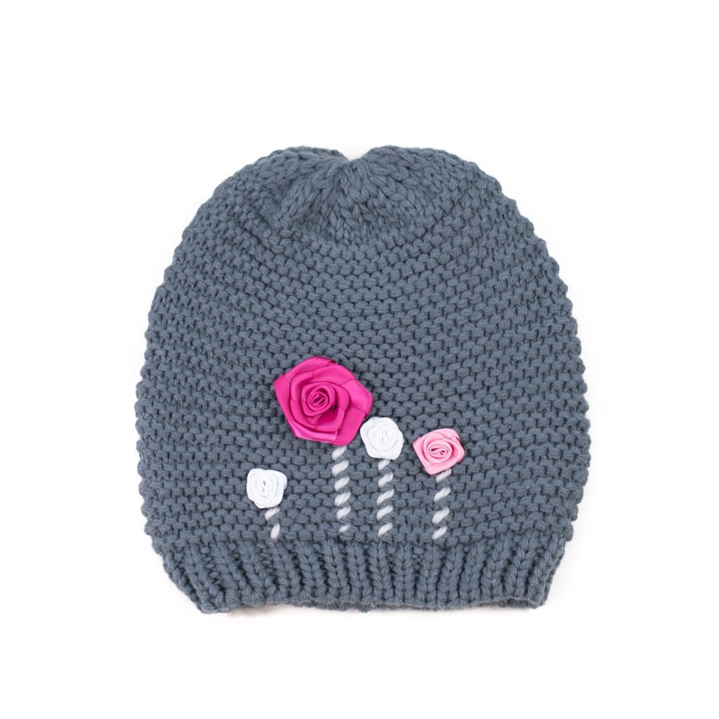 Šedá čepice s růžičkami