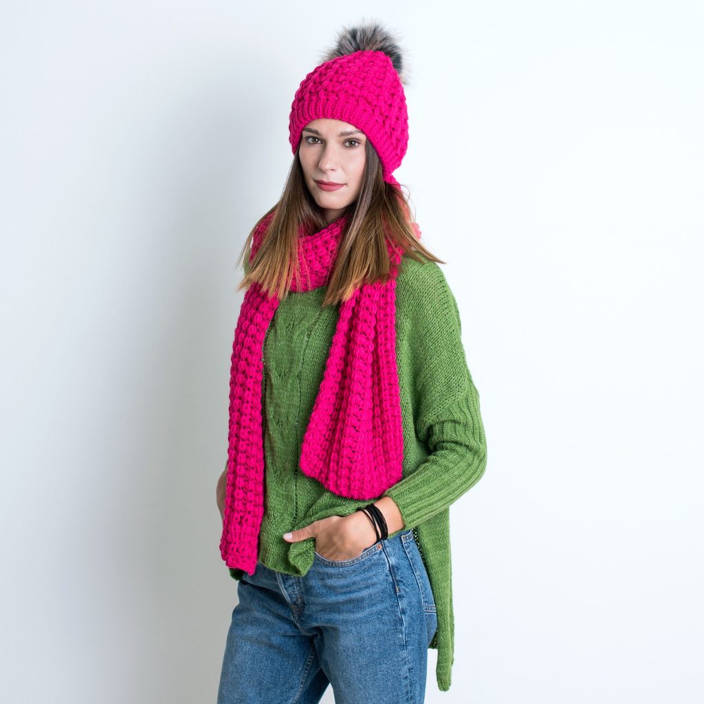 Sada zimní čepice a šály růžová Zimní komplet fuchsiový
