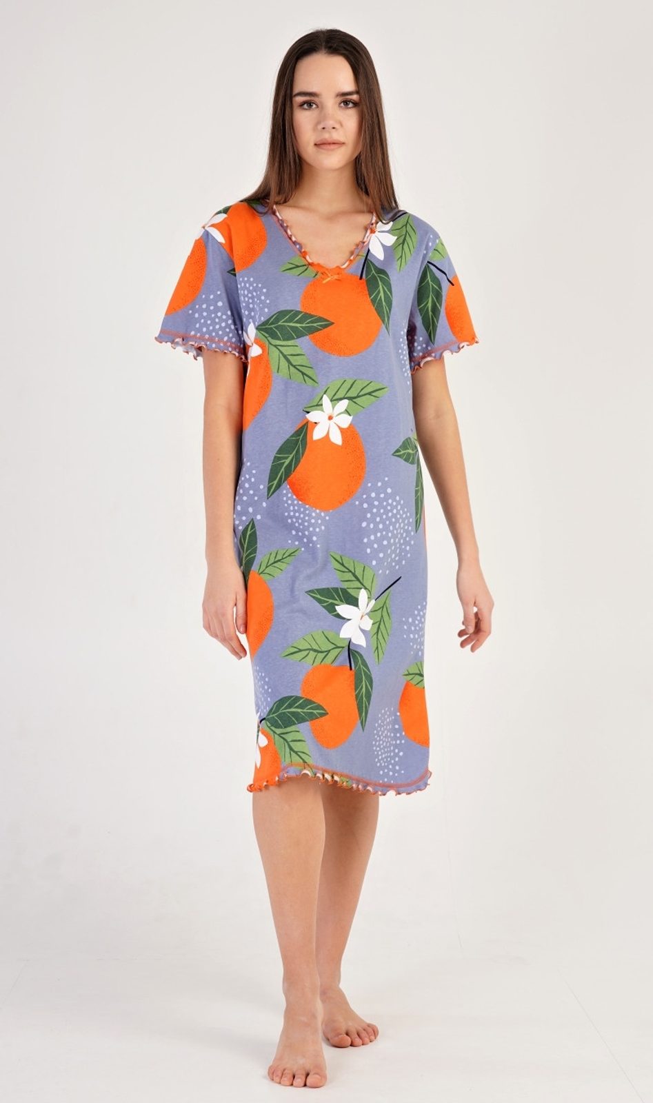 Dámská košilka Zuzi 5 modrá s květy Dámská noční košile s krátkým rukávem Pomeranče - oranžová