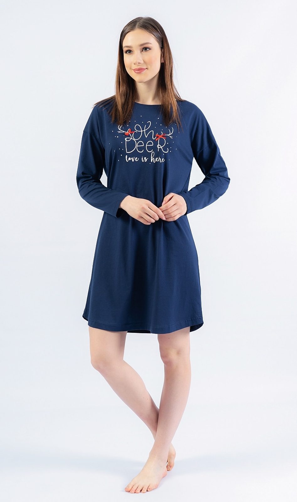 Dámská noční košile s dlouhým rukávem Oh deer - tmavě modrá Dámská noční košile s dlouhým rukávem Oh deer - tmavě modrá