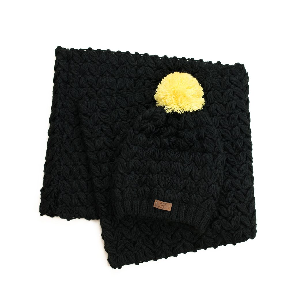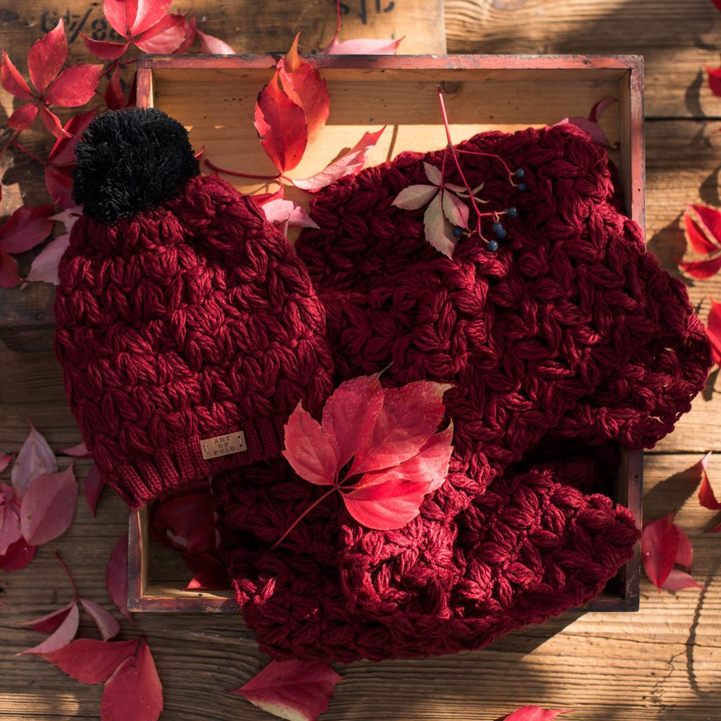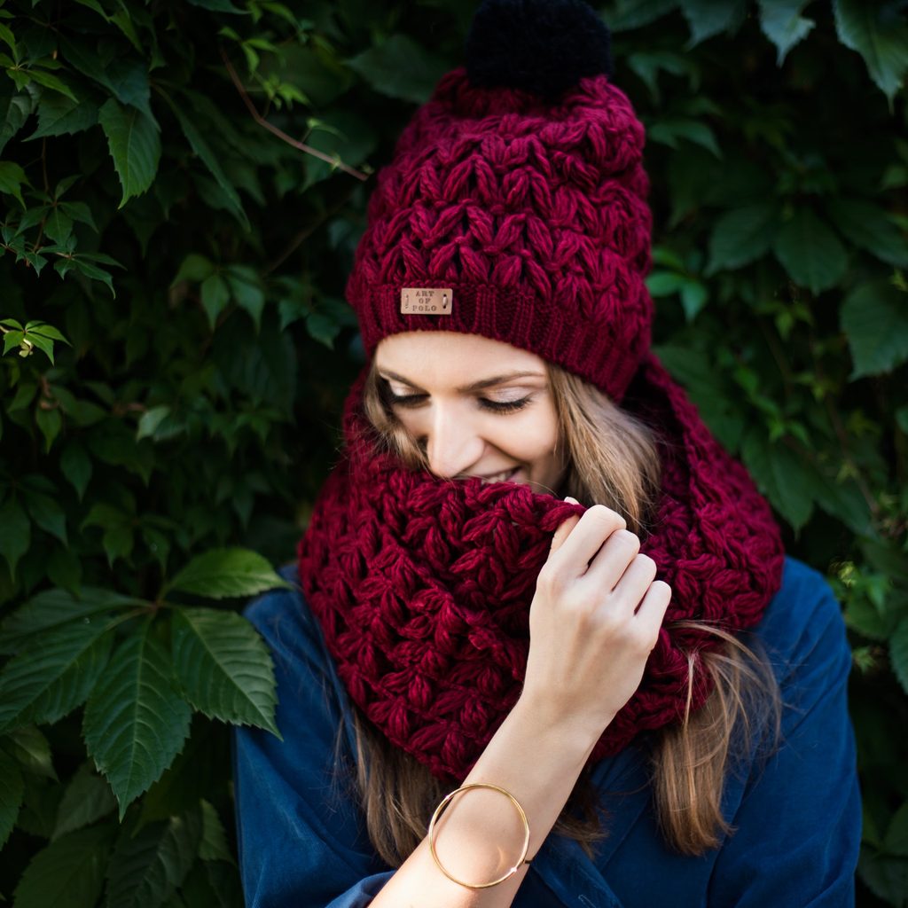 Stylová sada na zimu: čepice s bambulí a tunel. Provedený z příjemného materiálu. Čepice je z vnitřní strany podšitá flaušem. Klasický střih se bude hodit k mnoha stylizacím.