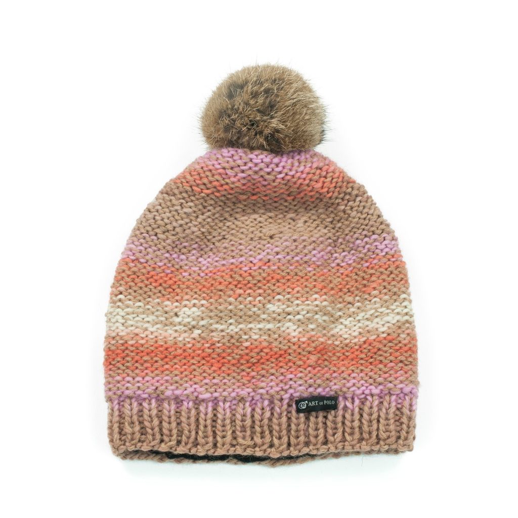 Světlohnědá ručně šitá Čepice Pompom