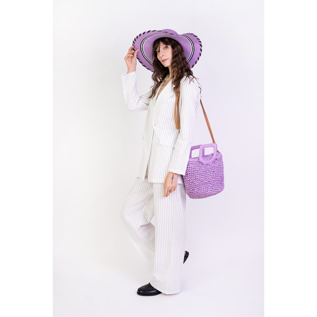 Taška z impregnovaného papíru. Podšívka uvnitř. Dva páry uší - do ruky a na rameno. Má odepínatelný pásek. Tato taška se bude hodit k mnoha stylizacím: zároveň k neformálním, jak i elegantnějším.