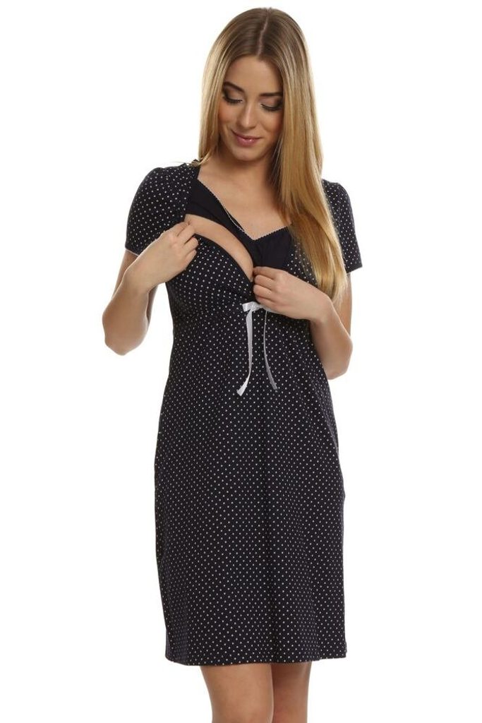 Bavlněná noční košile vhodná pro těhotné a kojící ženy v tmavě modré barvě. Bavlněná noční košile vhodná pro těhotné a kojící ženy v tmavě modré barvě. Materiál: 100% bavlna