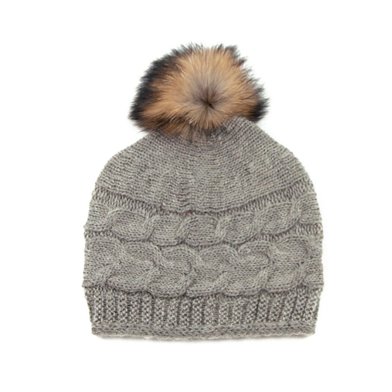 Vlněná čepice s bambulí z přírodního kožíšku