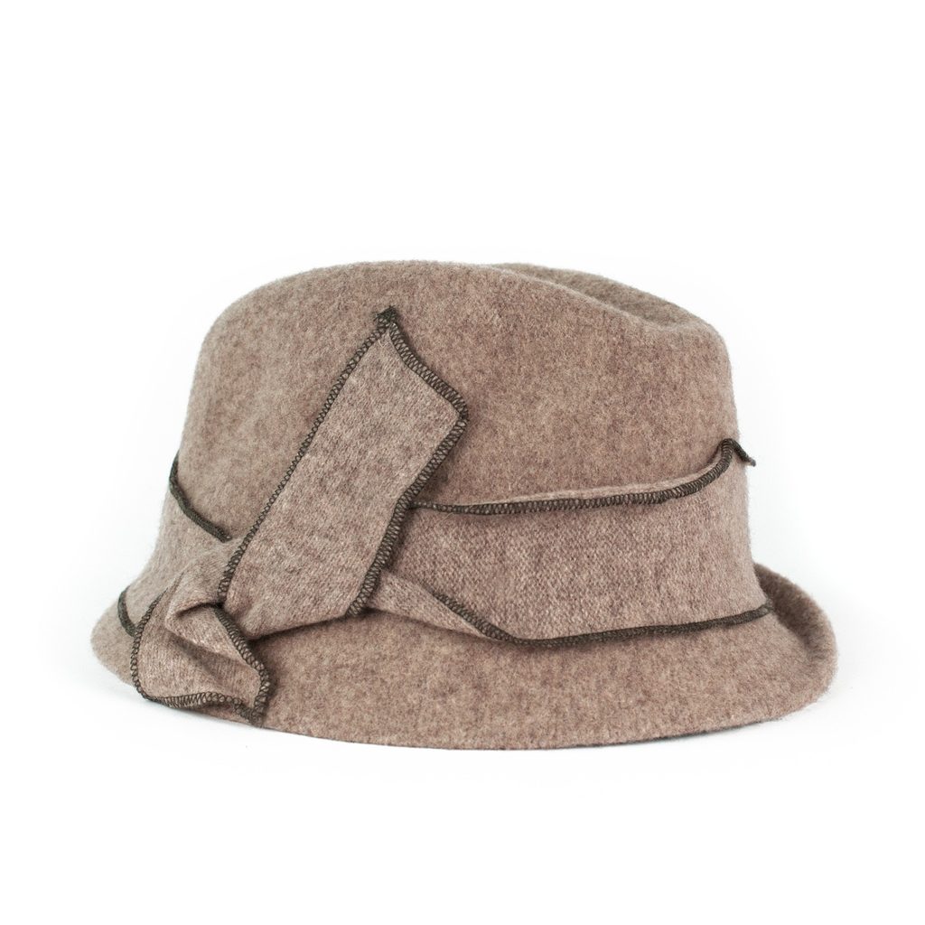 Zdobený klobouk - světlebéžový Elegantní klobouk z vlny červený