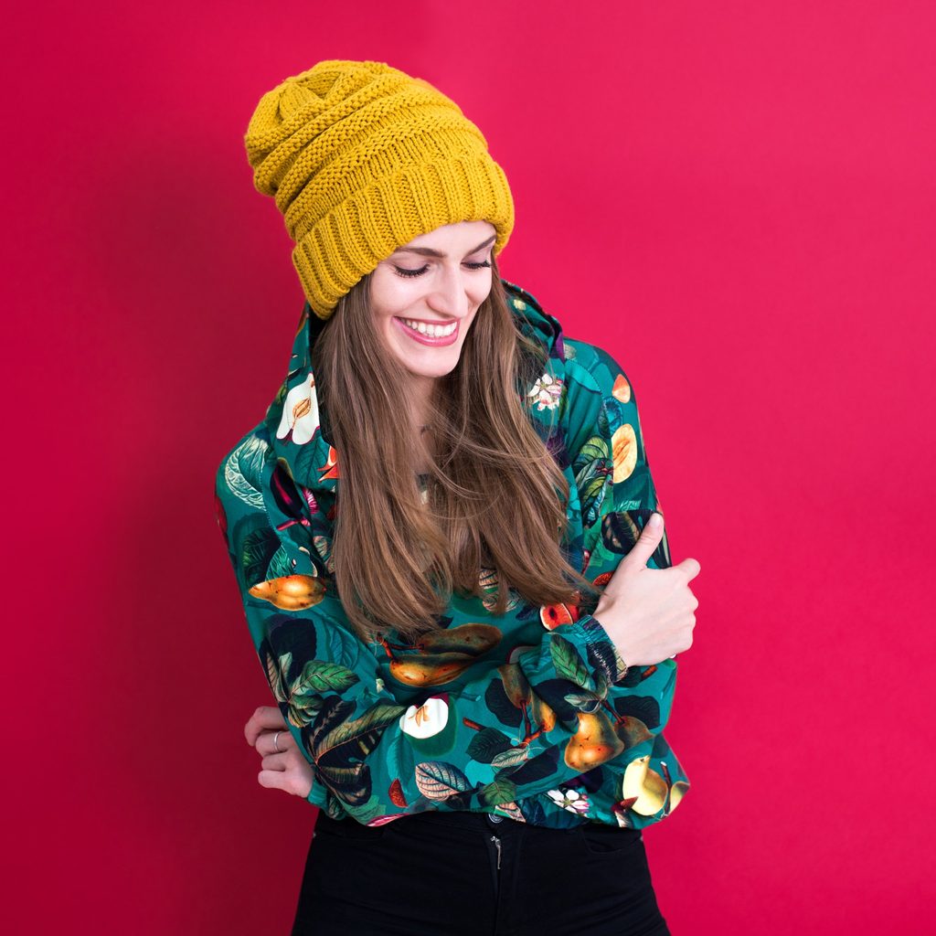 Originální čepice se zahnutím na zimu. Provedená z nekousavého materiálu. Vejdou se do ní sepnuté vlasy. Lehce elastická. Hodí se ke každodenním stylizacím.