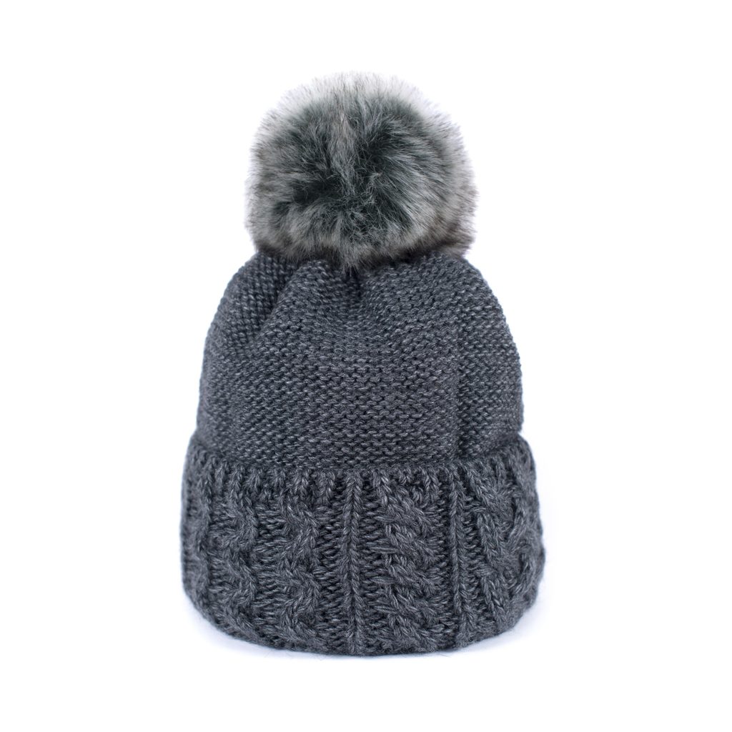 Zimní čepice s bambulí. Provedená z měkkého a příjemného materiálu. Bambule provedená z umělé kožešiny. Spodní část na zahnutí. Velmi teplá. Hodí se zároveň k neformálním i elegantním stylizacím.