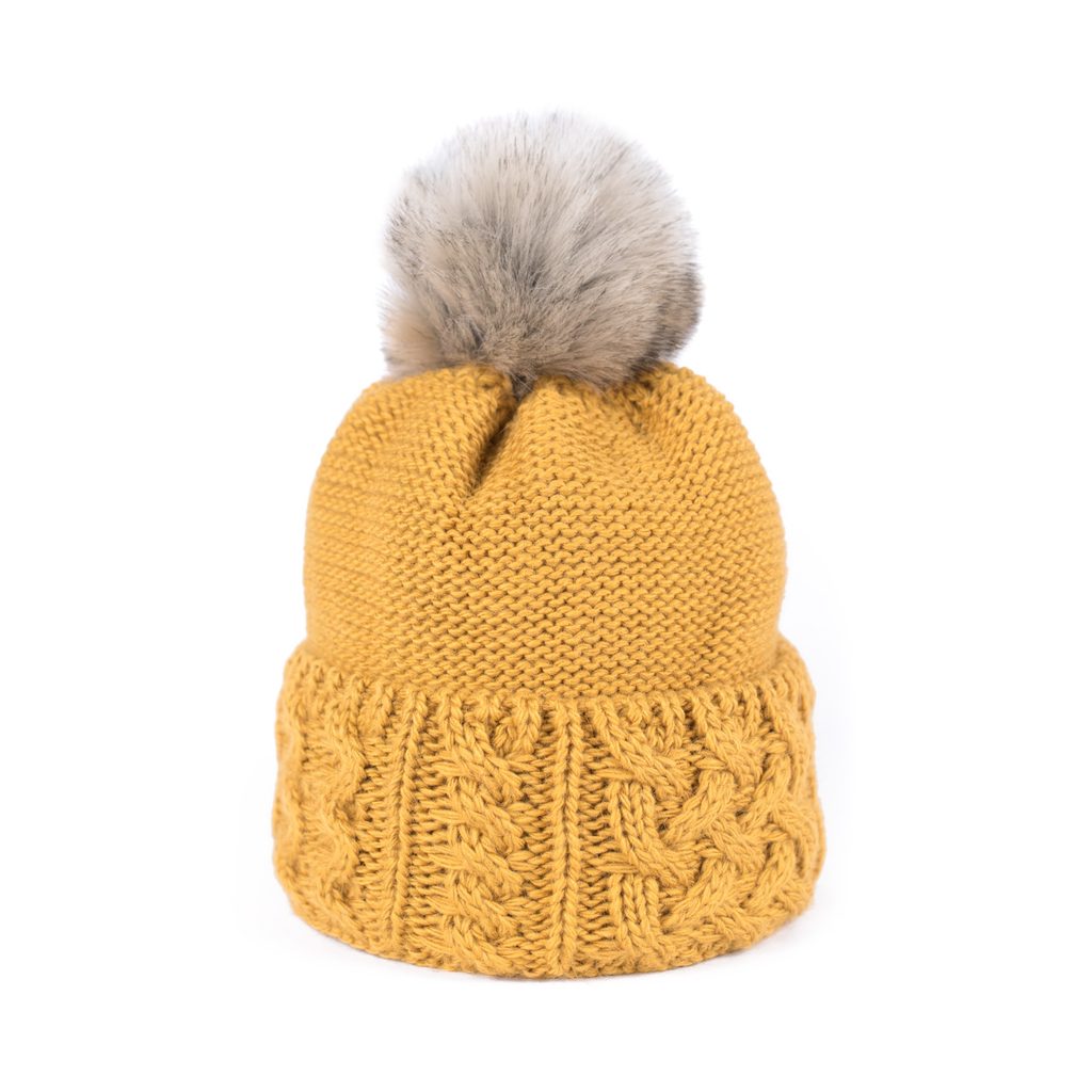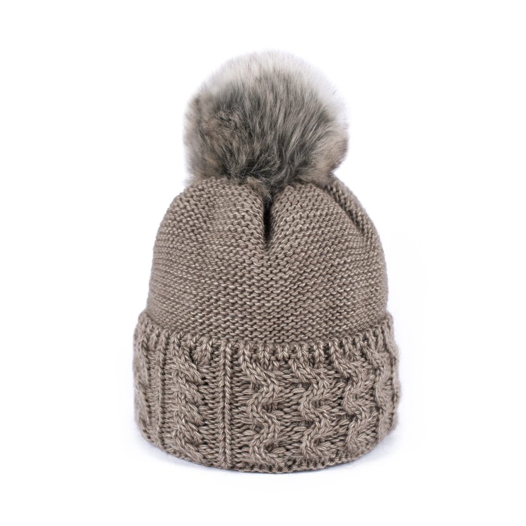 Zimní čepice s bambulí. Provedená z měkkého a příjemného materiálu. Bambule provedená z umělé kožešiny. Spodní část na zahnutí. Velmi teplá. Hodí se zároveň k neformálním i elegantním stylizacím.