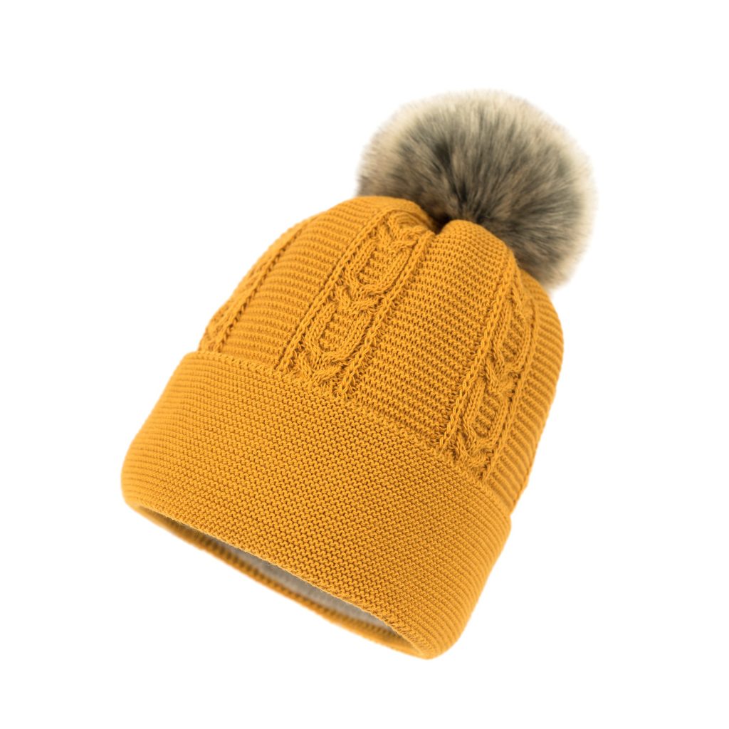 Zimní čepice s bambulí. Provedená z měkkého a příjemného materiálu. Bambule provedená z umělé kožešiny. Spodní část na zahnutí. Lehce elastická. Velmi teplá. Hodí se zároveň k neformálním i elegantním stylizacím. Výrobek zateplený flaušem. Vyrobeno v Polsku.