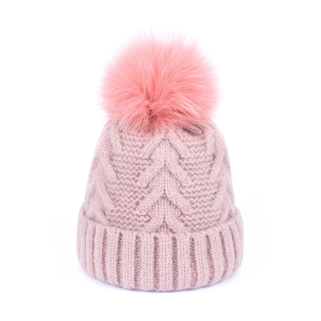 Zimní čepice s bambulí. Bambule provedená z pravé kožešiny. Spodní část na zahnutí. Lehce elastická. Hodí se zároveň k neformálním i elegantním stylizacím.