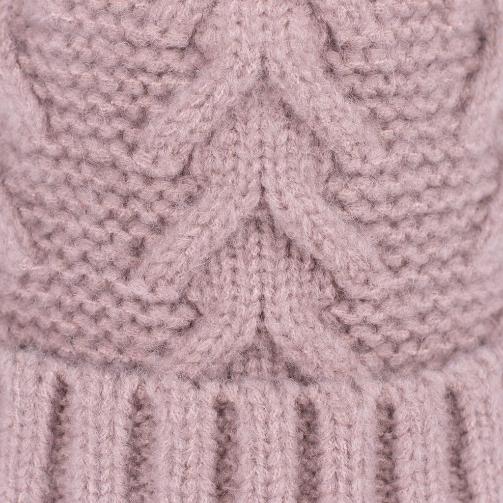 Zimní čepice s bambulí. Bambule provedená z pravé kožešiny. Spodní část na zahnutí. Lehce elastická. Hodí se zároveň k neformálním i elegantním stylizacím.