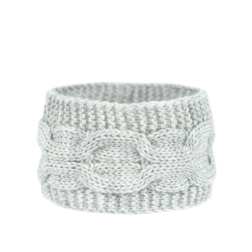Podzimní pletená čelenka tmavošedá Čelenka se zdobením tmavošedá